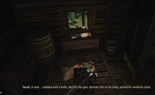 When Geralt looks at remains, he can deduce the actions that occurred to cause that particular deposit – did they die here, or were they placed here after death? Has any animals moved or otherwise affected the body in any way? What about the environment – has weather affected these remains in any way? Is there something significant about the way this body was or was not buried?