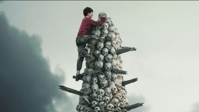 In the final act of 28 Years Later, the audience is introduced to Ralph Fiennes’ character Dr Ian Kelson, a former GP who is thought to have lost his mind in the intervening years since the original outbreak of 28 Days Later (2003). Evidence to this is initially presented in the form of a massive monument made of the skeletal remains of the dead.